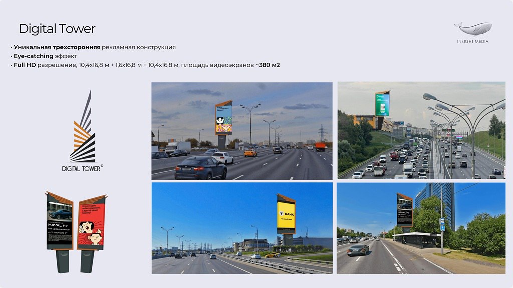 Insight Media специализируется на нестандартной цифровой наружной рекламе. Оператор работает на рынке с 2016 г. и управляет сетью собственных рекламных носителей, которая включает в себя цифровые и статичные конструкции (DOOH и ooh), расположенные в Москве и Московской области. Кроме того, в настоящее время у Insight Media есть рекламные форматы за рубежом – в Дубае (ОАЭ).