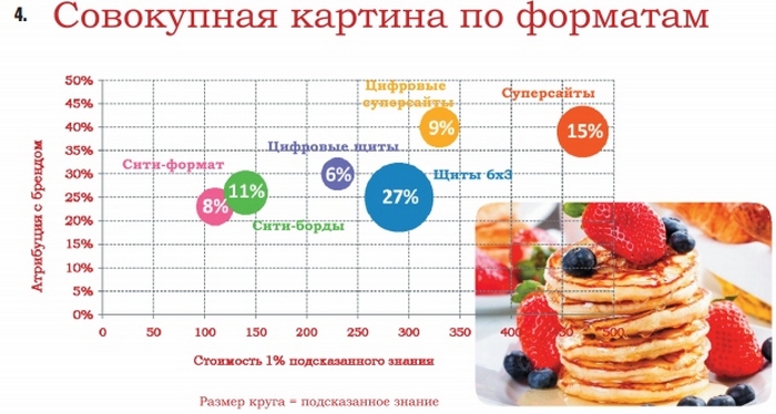 На что нужно обращать внимание при составлении медиамикса форматов для решения той или иной задачи? Если необходимо усилить имиджевую составляющую, чтобы наш бренд запомнили, пришли именно к нам, не спутали с конкурентами – нужно использовать крупные конструкции, несмотря на их стоимость (рис.4). Если требуется по максимуму увеличить знание бренда – не обойтись без максимально охватных форматов (6х3 м, суперсайтов, супербордов).