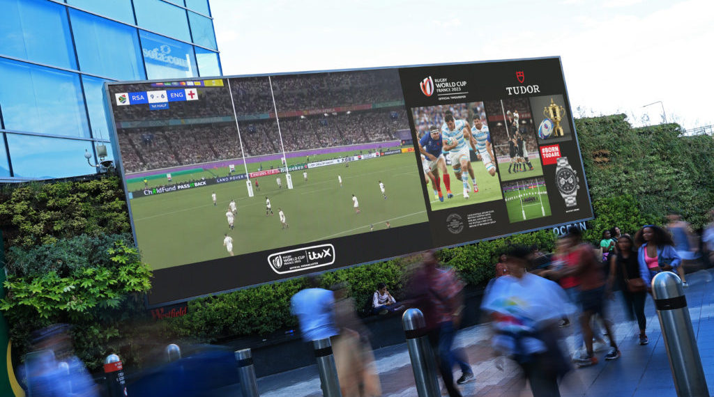 Он представляет собой синхронный показ одного креатива, разделенного на четыре цифровых экрана в одной локации